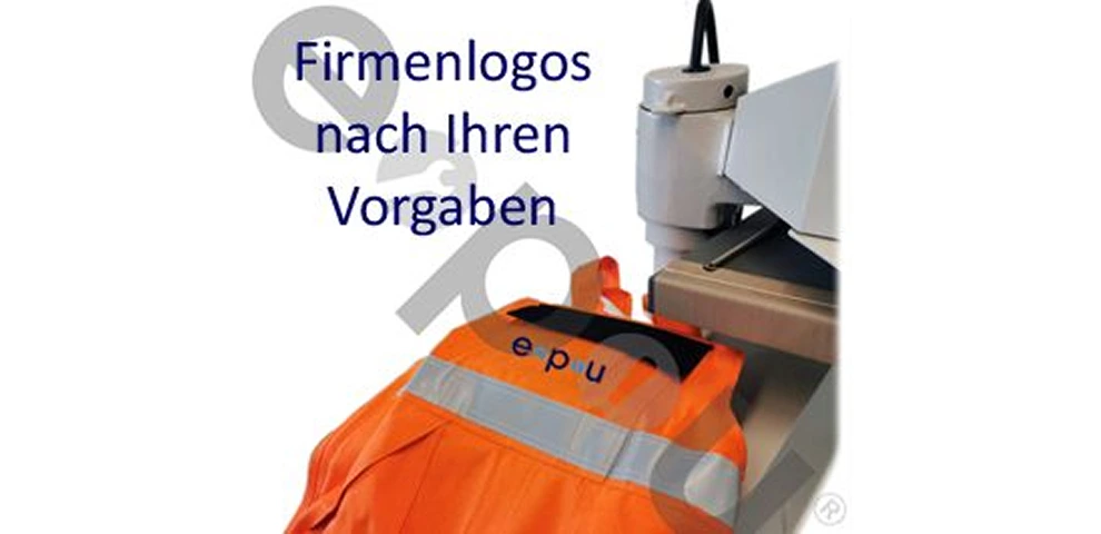 Besticken (nur Bekleidung ohne Schutznorm) oder Bedrucken mit Thermotransferfolien (auch flammhemmend) in vielen Farben sowie mehrfarbig, retro-reflektierend und wäschefest.Anfrage per E-Mail