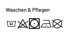 | Reinigung/Wäsche: | Bügeln bei niedriger Temperatur | Stufe 1, Maschinenwäsche 60°C |